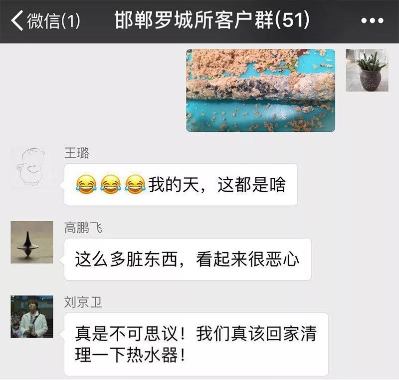 供電客戶經理把這張用過兩年的鎂棒圖片發到客戶群后,大家驚呆了,表示要回家清理熱水器。
