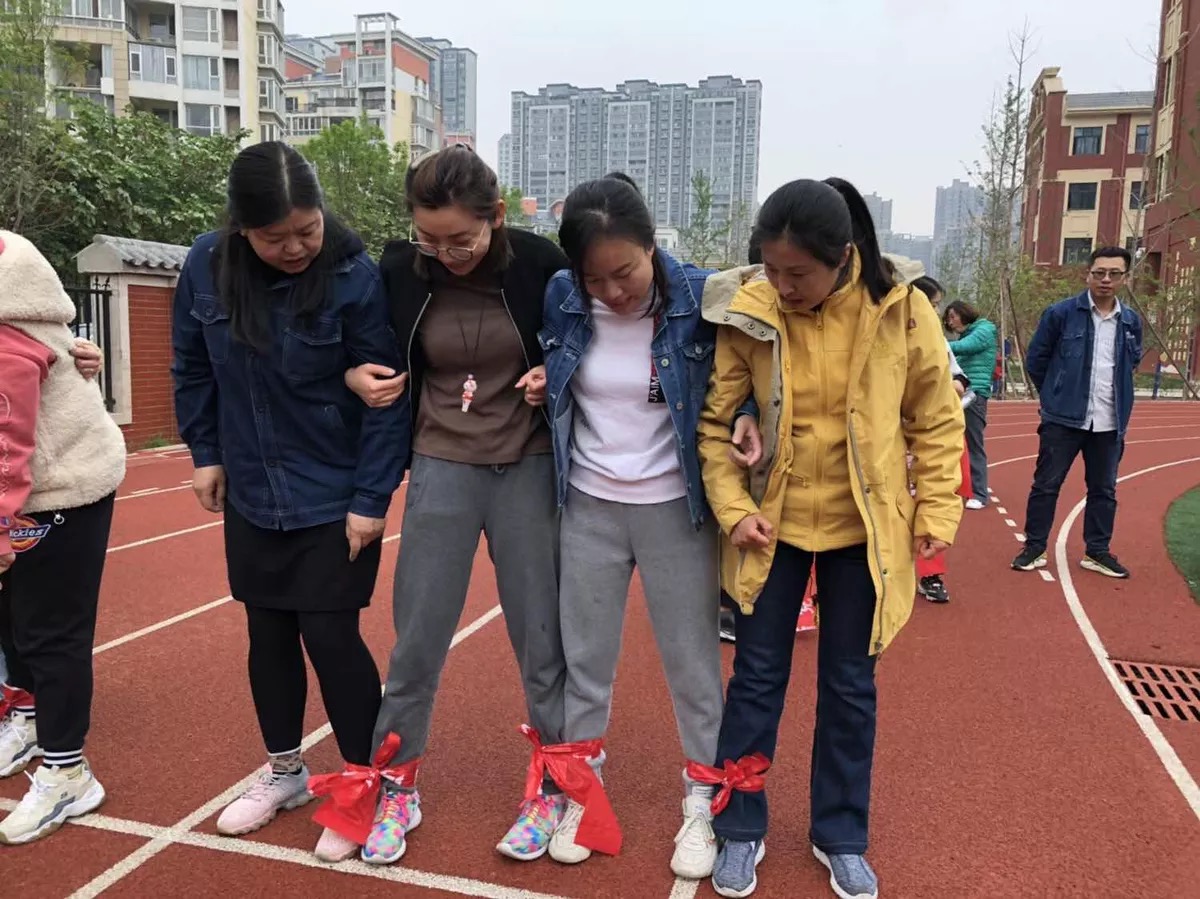 比賽第二項(xiàng):齊心協(xié)力——三條帶,三綁齊,五腿跑。