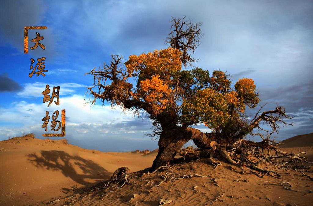 胡楊樹,生活在戈壁沙漠,那里沒有綠水青山,沒有人為之呵護,植物也寥寥無幾,生命似乎在這里望而卻步。然而,胡楊卻立定于沙海之中,扎根于戈壁灘上,經受著大自然各種各樣的折磨與考驗,與如火的驕陽拼搏,與如刀的風沙抗爭,在嚴寒的隆冬中堅強的屹立著。它的根系長在十米以下,因為只有在那里,才有它賴以生存的水源。強大的毅力讓它在荒漠中惡劣的氣候下頑強的生長著。它就像一個百折不撓的勇士,堅韌而頑強,孤獨而高傲,用自己的倔強和血性,守護著自己的尊嚴和使命。