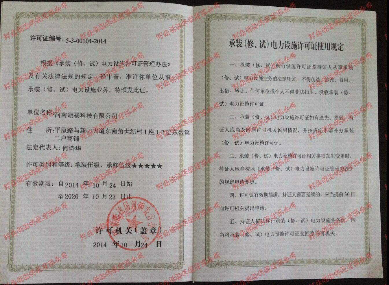 電力資質(zhì) 承裝修試電力設(shè)施許可證
